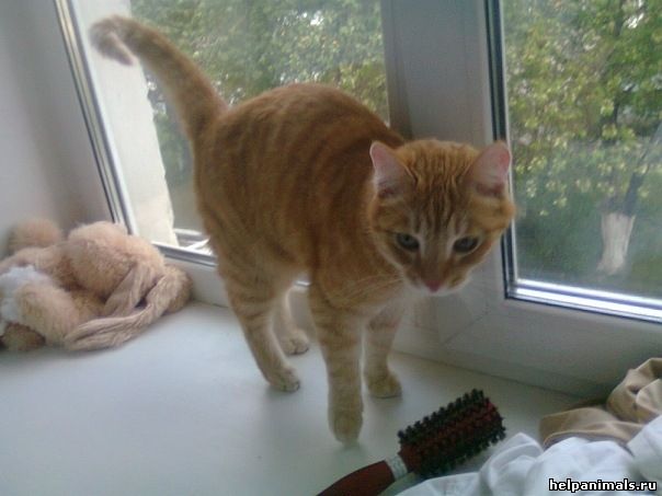 Кушает хорошо,ласковый,явно,когда-то жил дома и тянется к людям.