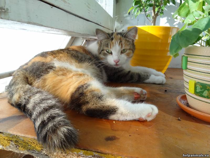 Здравствуйте! Меня зовут Сара. Я появилась около подъезда в начале сентября. Чистая и не худая, но уходить мне было некуда. Потом я стала хромать. И тут, к моему огромному счастью, мне повстречалась замечательная девушка. Она взяла меня к себе домой. Сейчас я стерилизована. Воспитала не одно поколение котят. К людям я очень ласковая, по отношению к другим животным - терпима. Сама не нападаю, но и в обиду себя не дам.