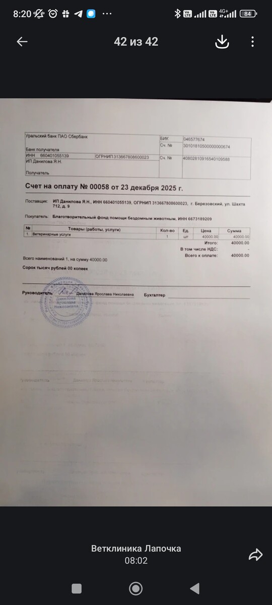 Фото- выставленные счета за корм!! На тепловые пушки!! Из клиники Лапочка.